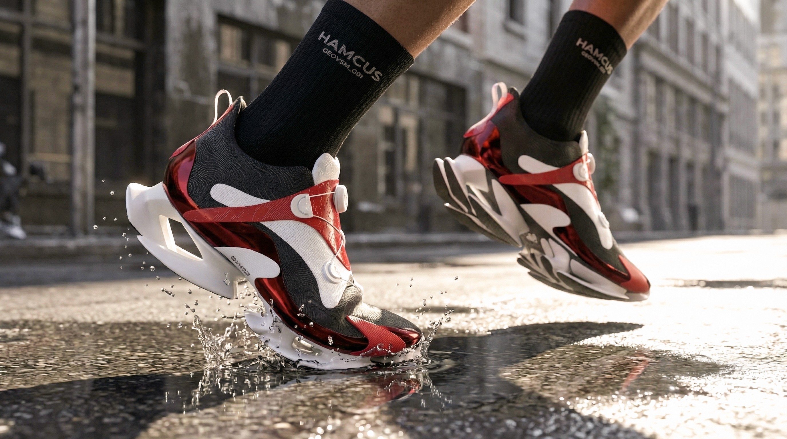 Develop innovative running shoes for Hamcus that incorporate blade designs for superior traction, stability, and energy return, aimed at maximizing the performance of 10k marathon runners.