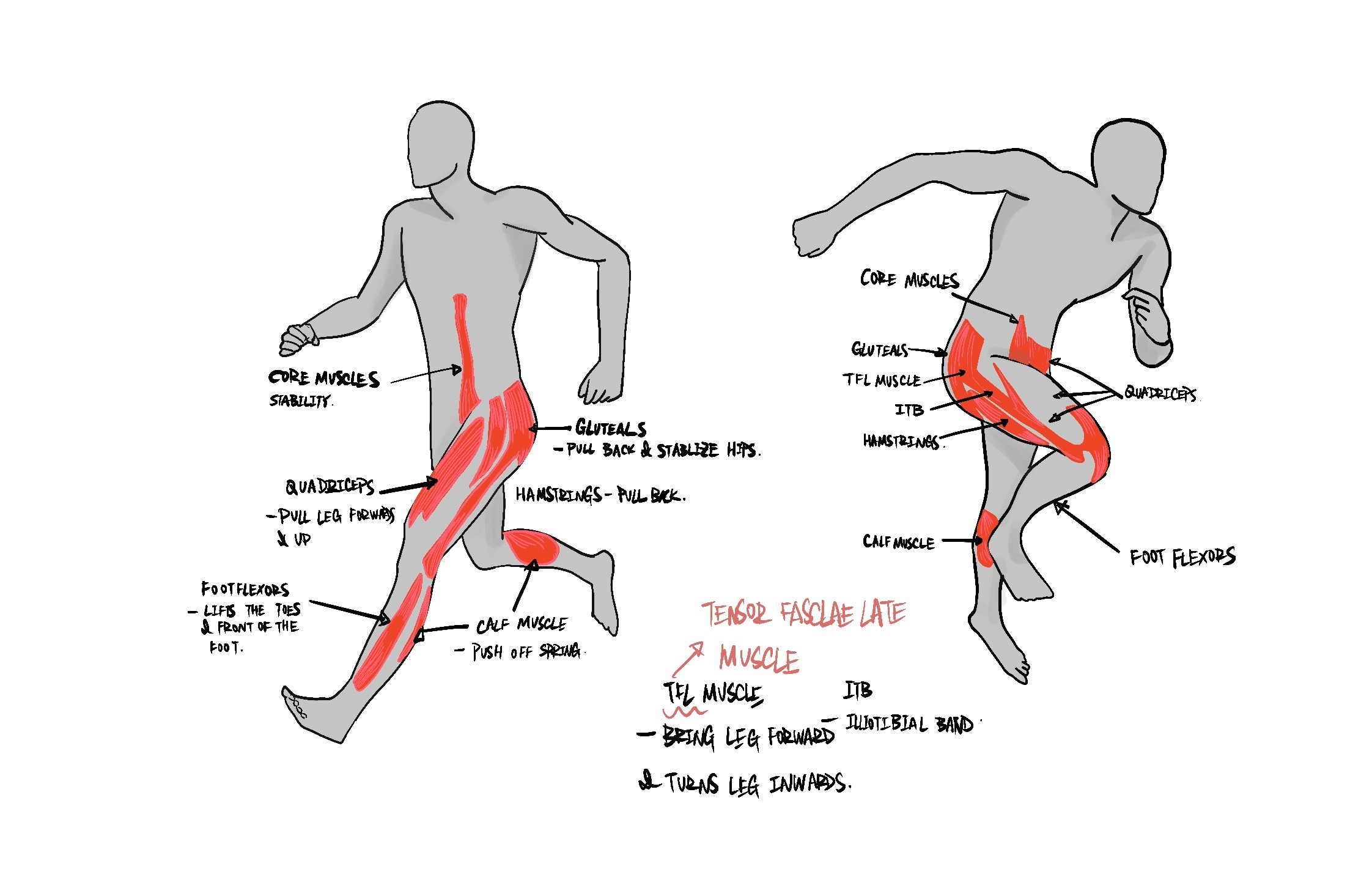 Pain Point: Marathon runners experience fatigue through inefficient energy transfer and increased impact stress associated with heel strikes.