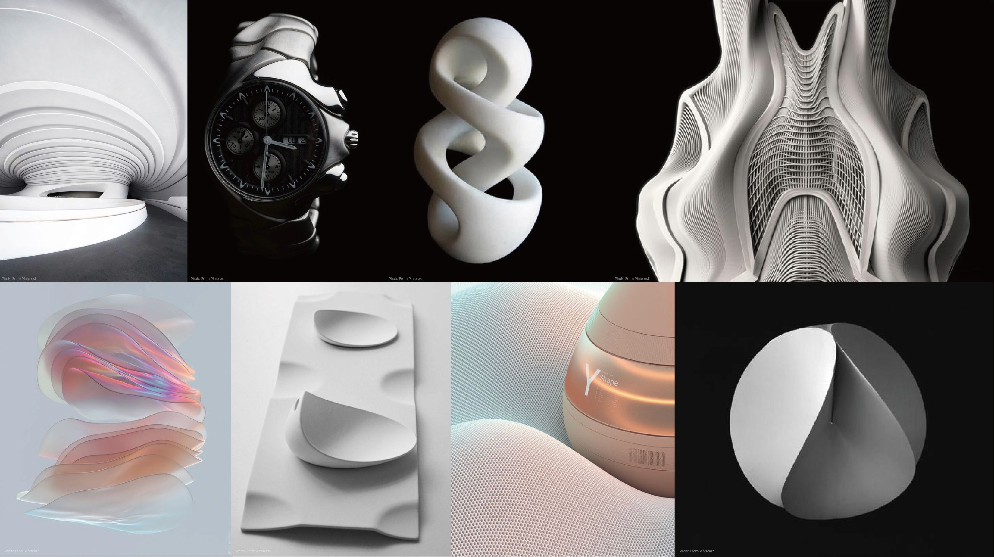 The design draws from smooth, organic geometries and gentle