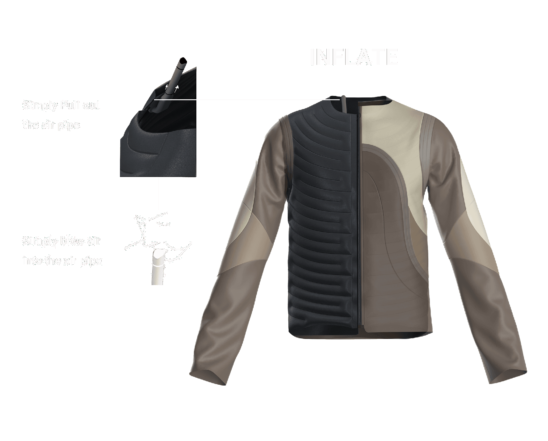 The jacket features an inner design for instant stress relief, while maintaining an unchanged and discreet outer appearance.