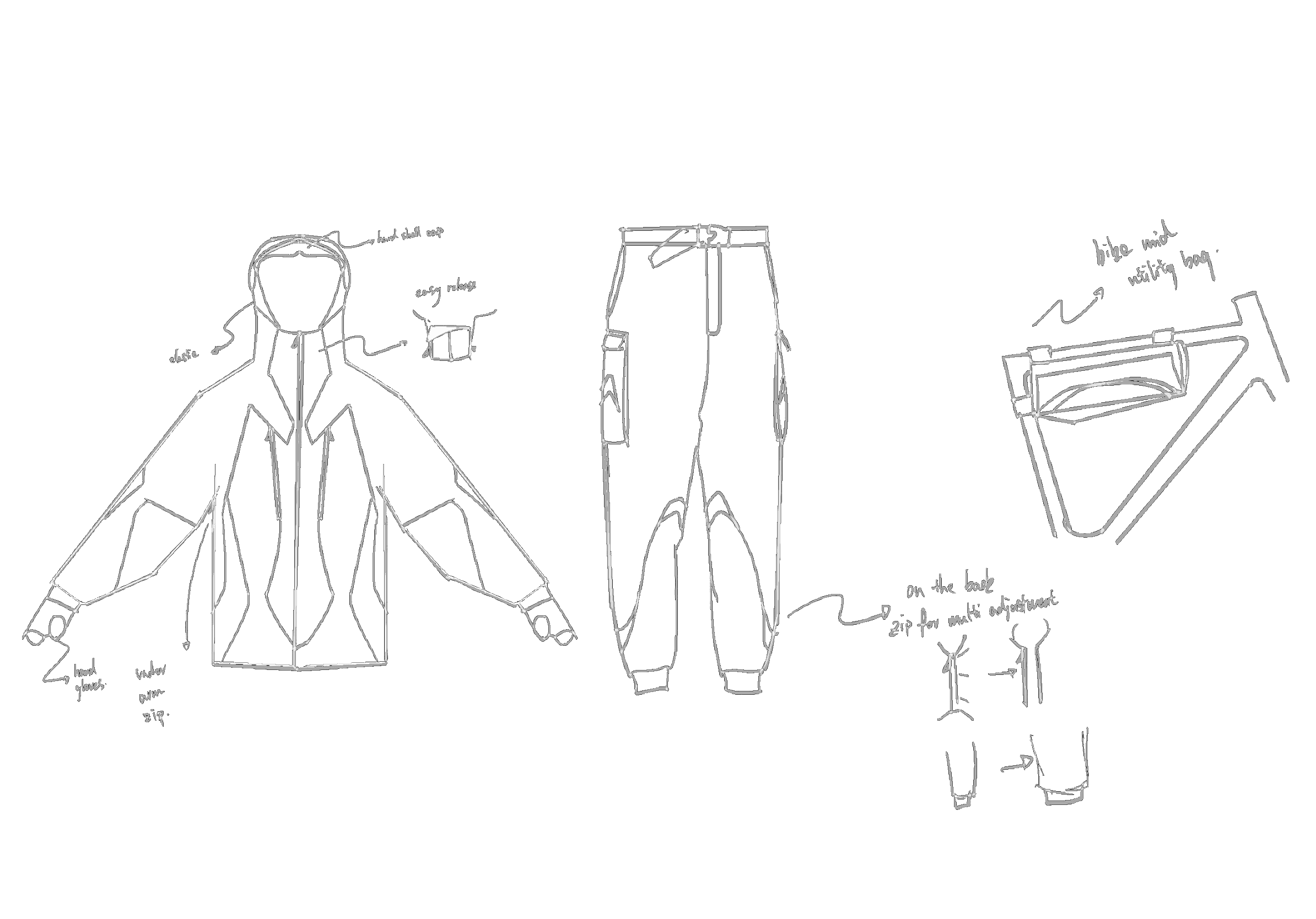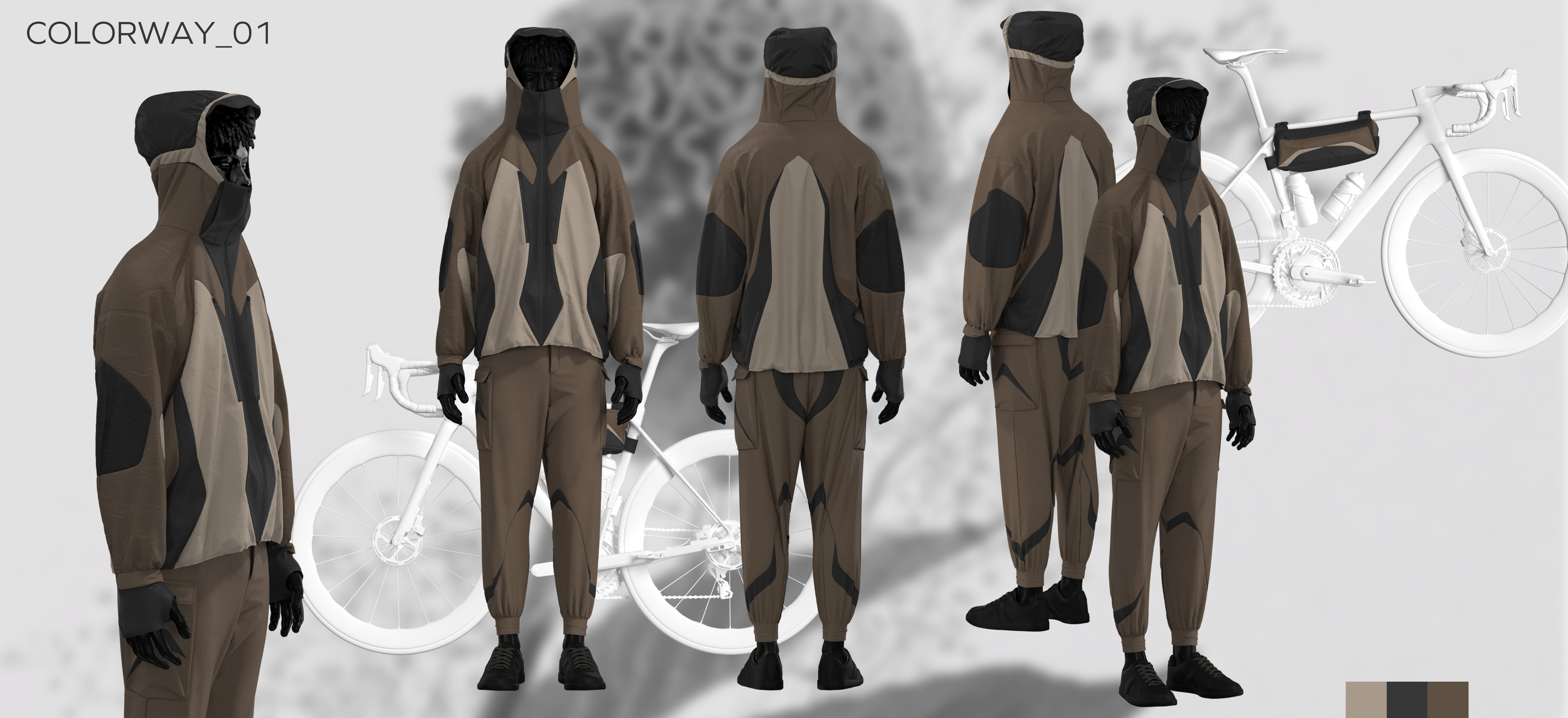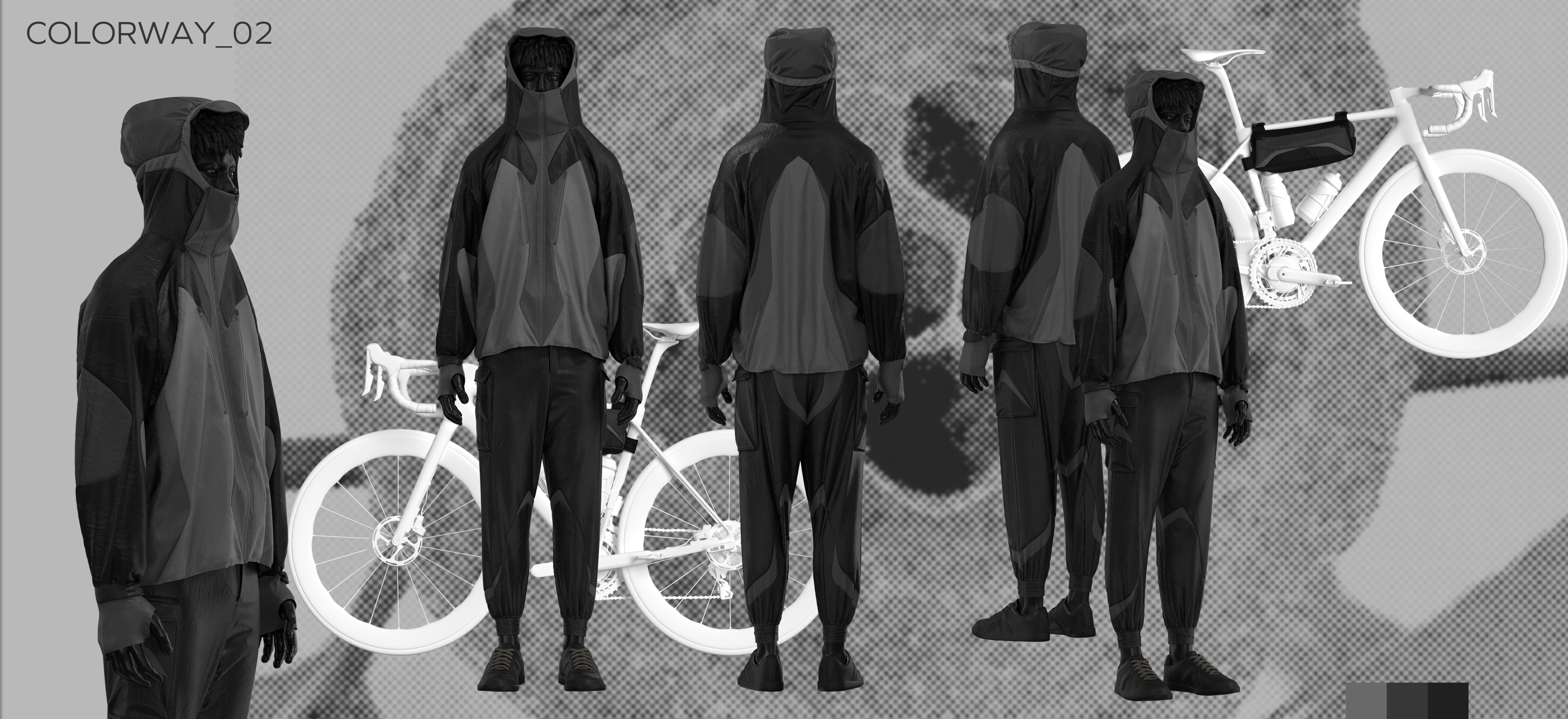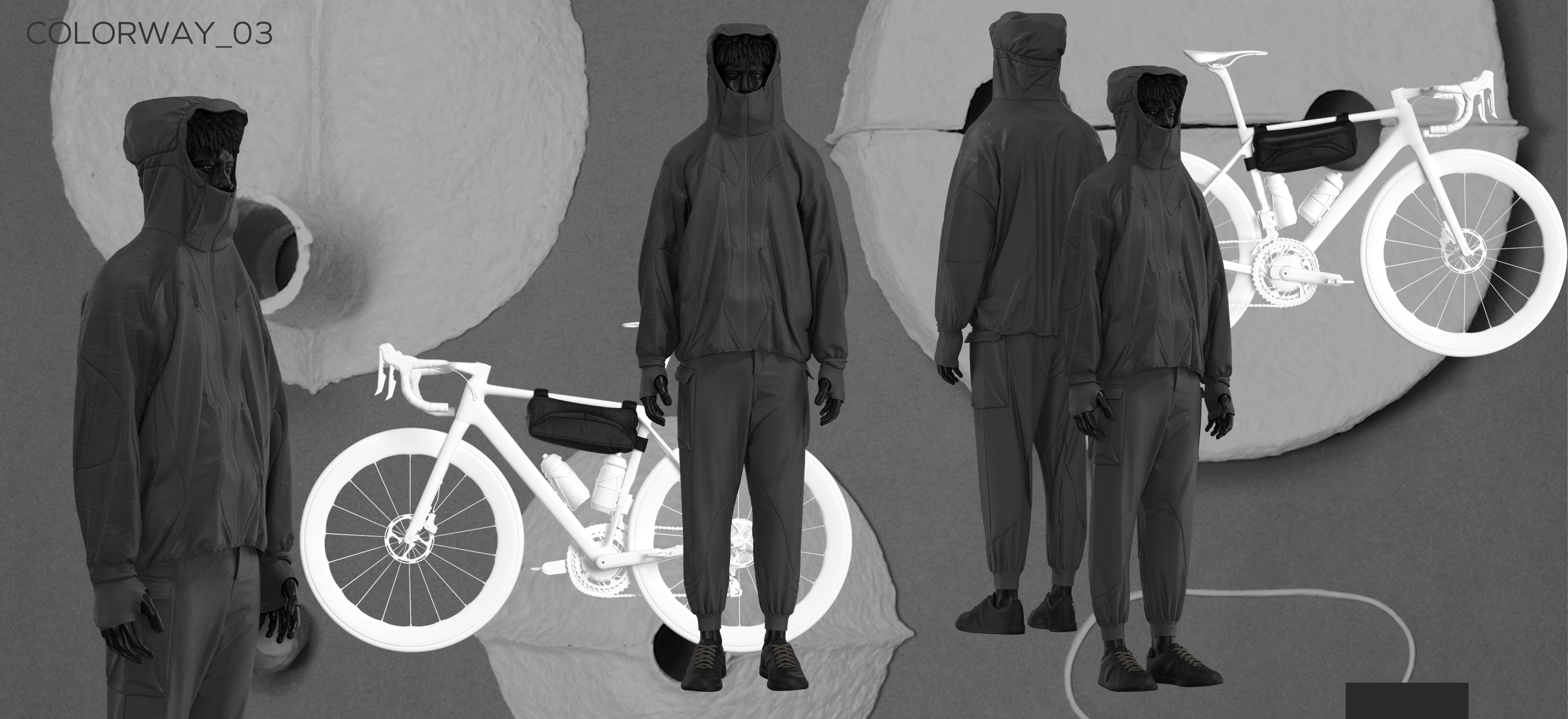 Design a functional and stylish cycling commute tech-wear collection for Goldwin 0. This collection will cater to urban cyclists, focusing on performance-driven apparel that blends technology, comfort, and style seamlessly.