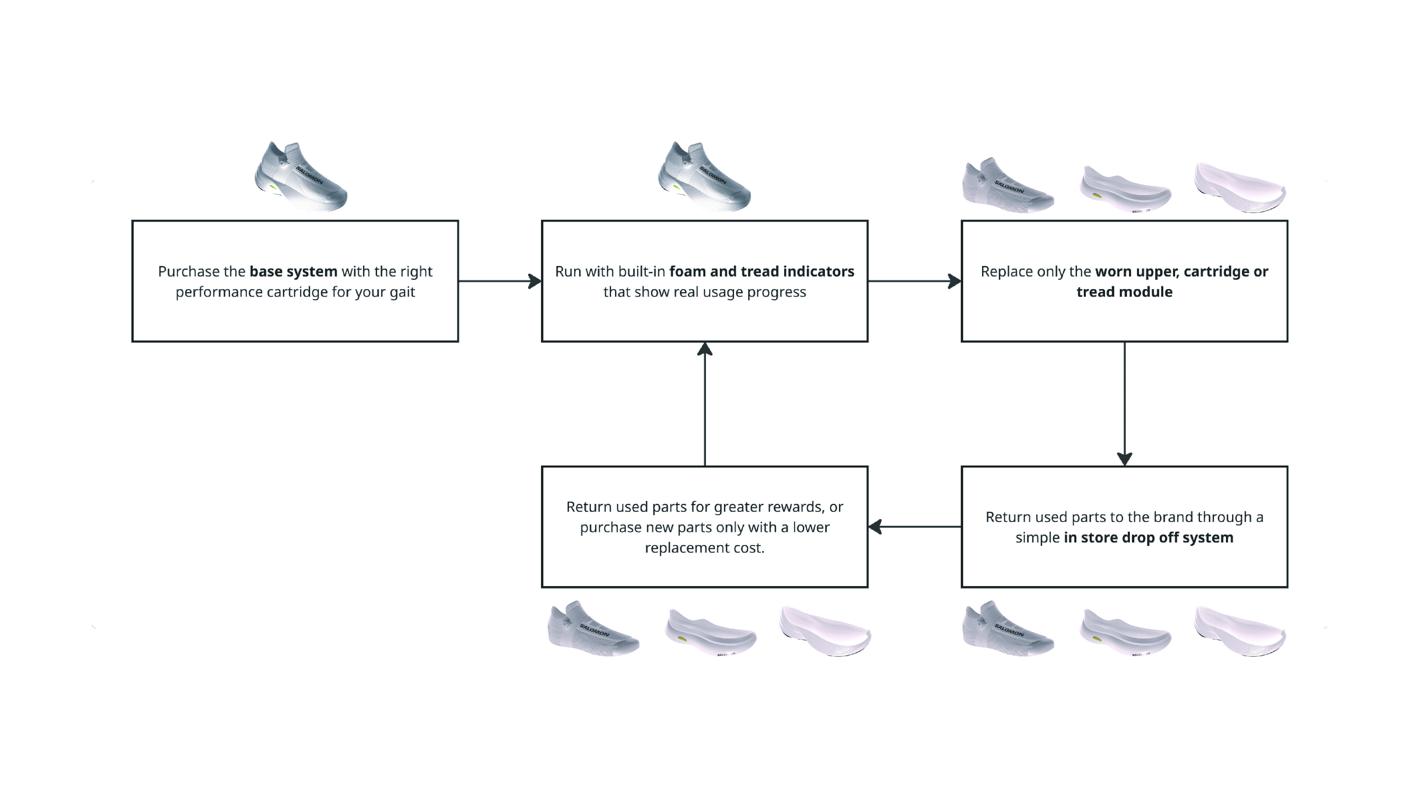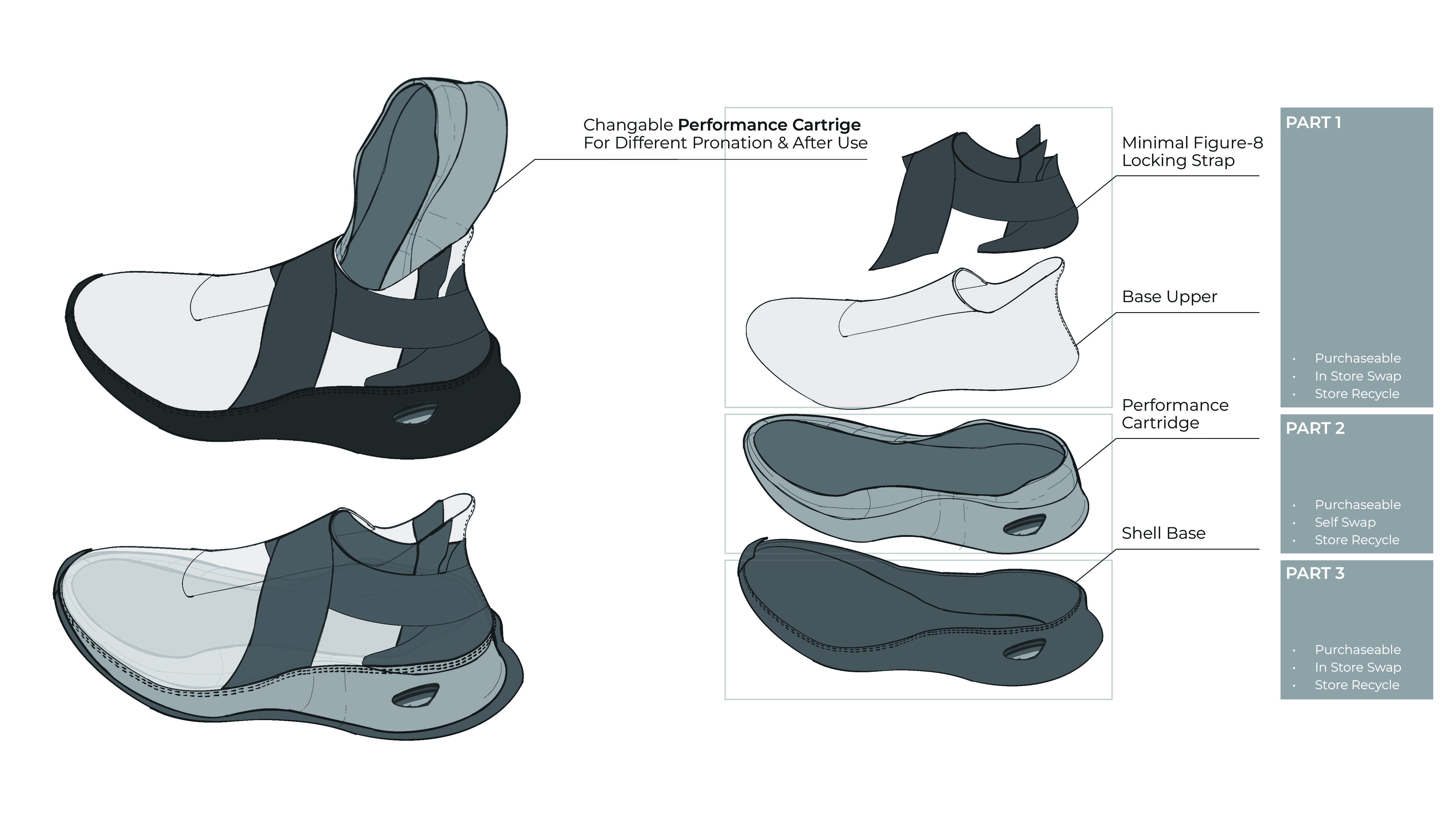 This project reimagines performance running footwear as a longer-life, separable system that helps runners reclaim lost miles by using the shoe to its full functional life instead of replacing it too early.