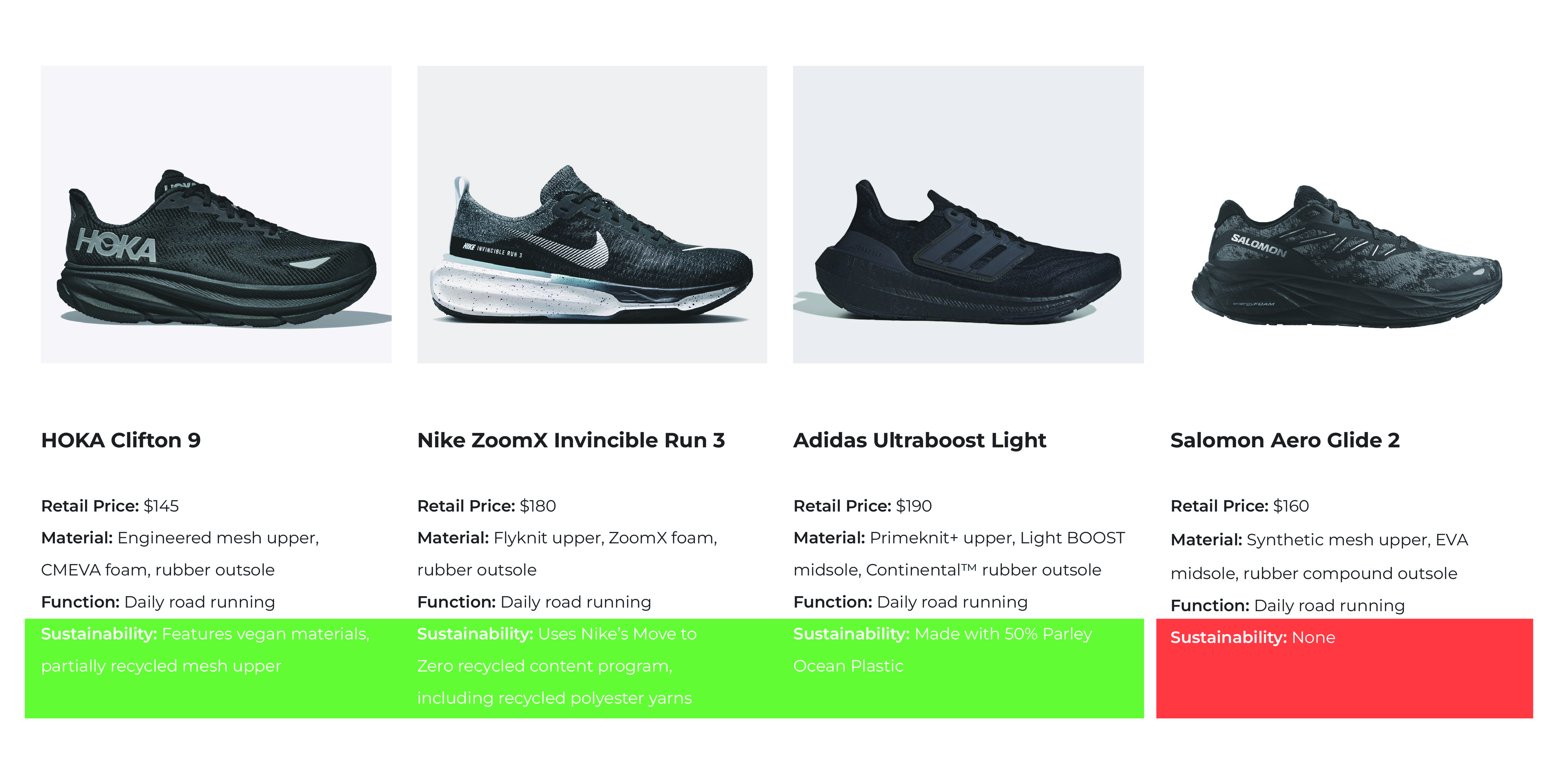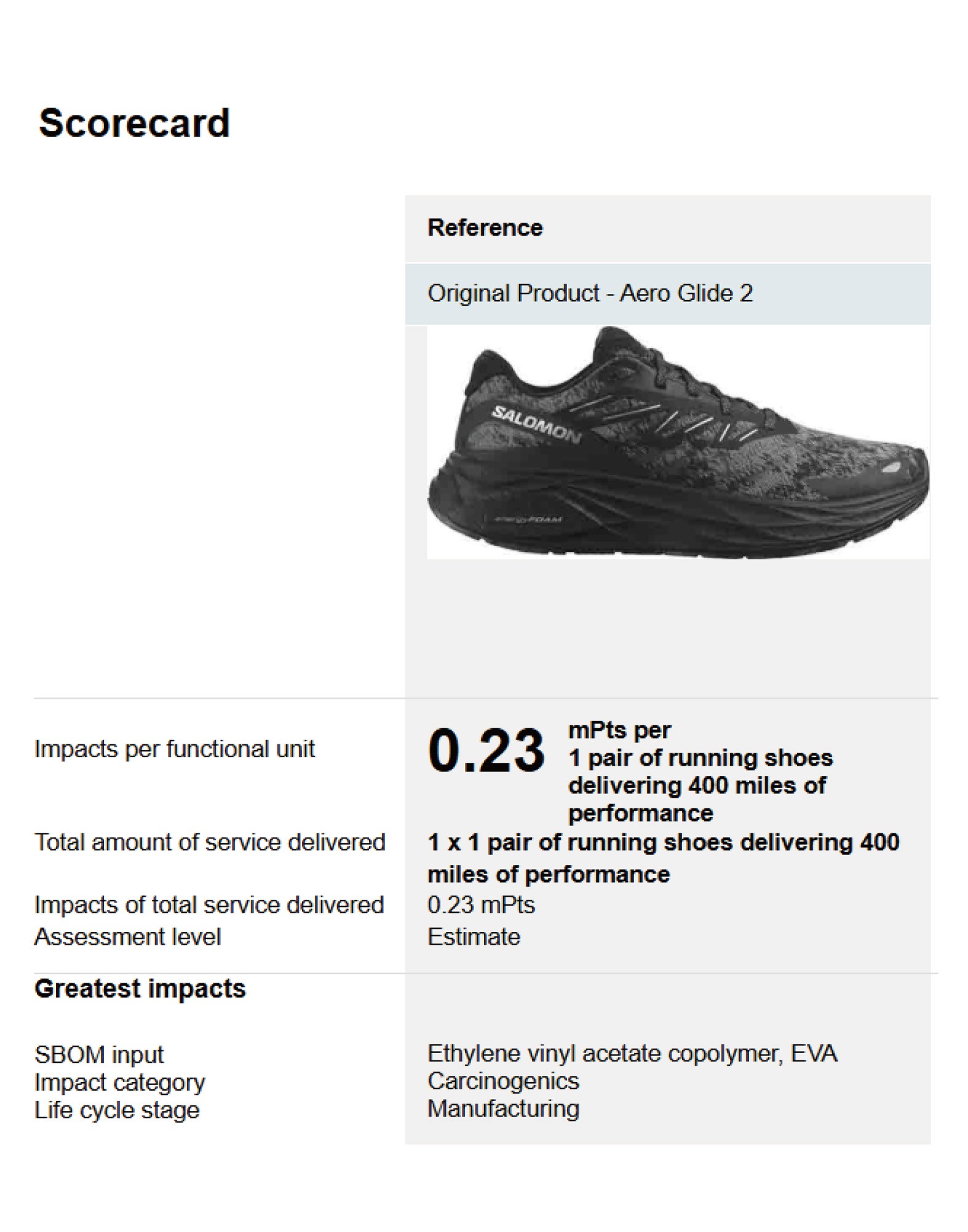Hot Spot: Most of the shoe’s environmental impact is concentrated in manufacturing, especially in the EVA midsole and bonded synthetic materials.