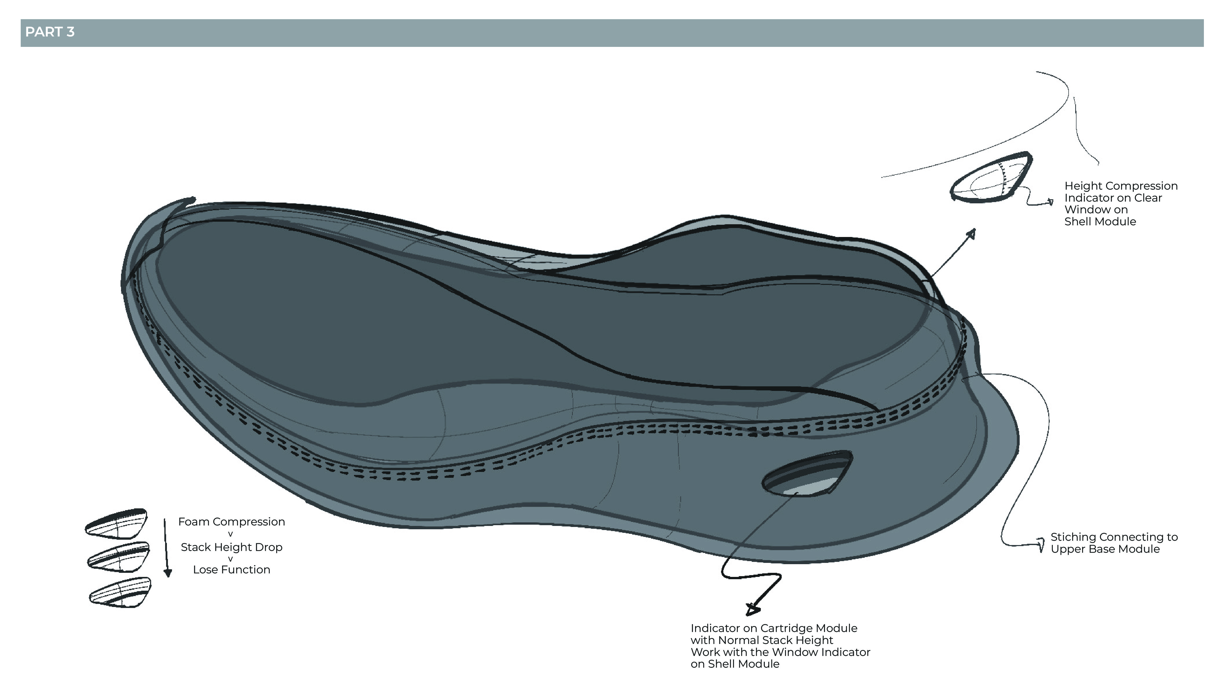 Its purpose is to extend functional lifespan and challenge the disposable logic of current footwear construction through greater wear transparency, repair, and recovery.
